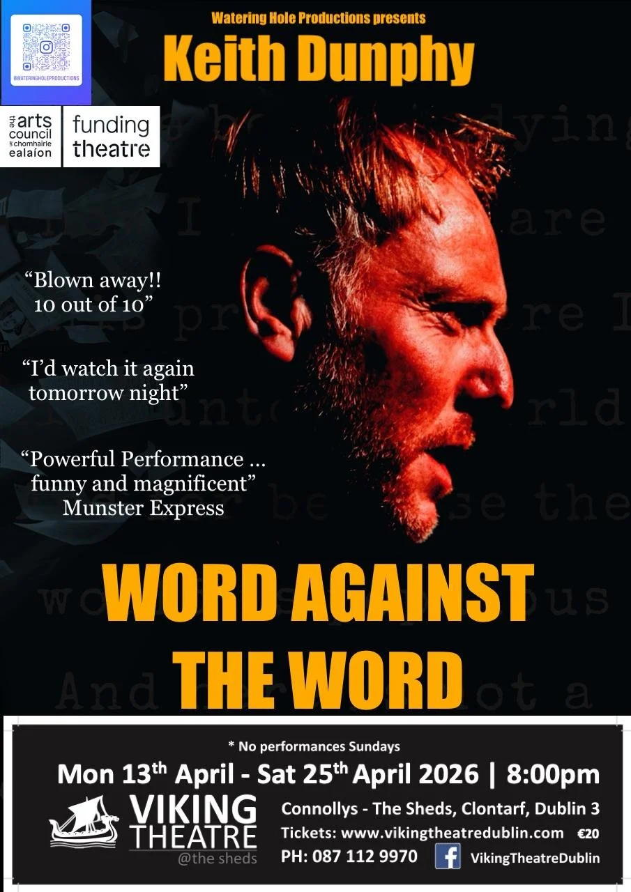 Keith left Waterford in 1996 to train at the Royal Academy of Dramatic Art in London. Funded by his hometown, he dreams of performing Shakespeare in his own accent. Word Against The Word is a one-man play exploring how a working class Irish actor with dyslexia navigates show business, hoping but never knowing if he’ll ever get to play the king that once visited Waterford – Richard II.
